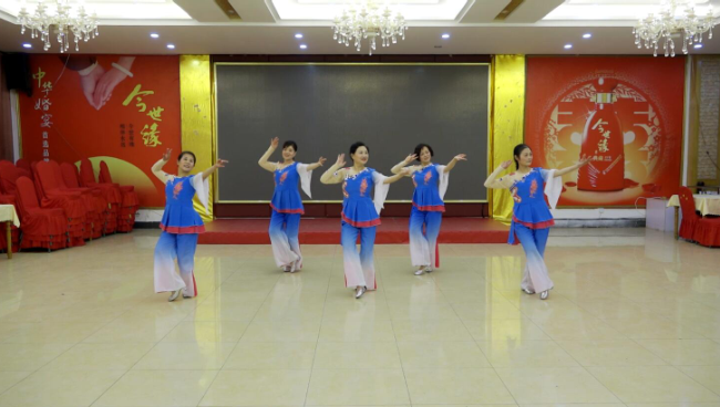 如今經(jīng)過多場(chǎng)賽事考驗(yàn)的農(nóng)場(chǎng)本土教練,又產(chǎn)生了把農(nóng)場(chǎng)退休舞蹈隊(duì)員們跳舞健身的風(fēng)采拍下并上傳上網(wǎng)的想法。這一想法迅速得到了農(nóng)場(chǎng)廣大姐妹們的贊同,并迅速組織排練、磨合和提高,在舞蹈表演熟練的基礎(chǔ)上,于是統(tǒng)一服裝,精心編排了“哈達(dá)”和“幸福小城”的舞蹈,讓農(nóng)場(chǎng)職工和廣大網(wǎng)民見證了淮海老年職工的舞蹈風(fēng)采。圖為農(nóng)場(chǎng)老年舞蹈隊(duì)員們?cè)诰呐啪?ldquo;哈達(dá)”和“幸福小城”舞蹈在優(yōu)酷網(wǎng)上截屏?xí)r的鏡頭。