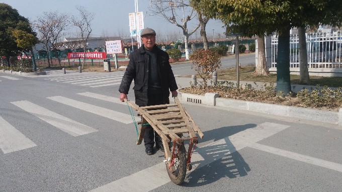 徐傳友的父親曾經是淮海戰役中的支前民工,在世時,經常向子女講述他們當年浩浩蕩蕩用小推車推著糧食彈藥支前的故事。上世紀七十年代,徐傳友經常參加農場水利大會戰,在水利工地上用小推車推土。后來淮海用挖掘機搞水利了,小推車就用不著了。受父親支前故事的啟發,徐傳友覺得將小推車保留下來很有紀念意義。于是,他便將當年水利大會戰推土方的小推車保留了下來。