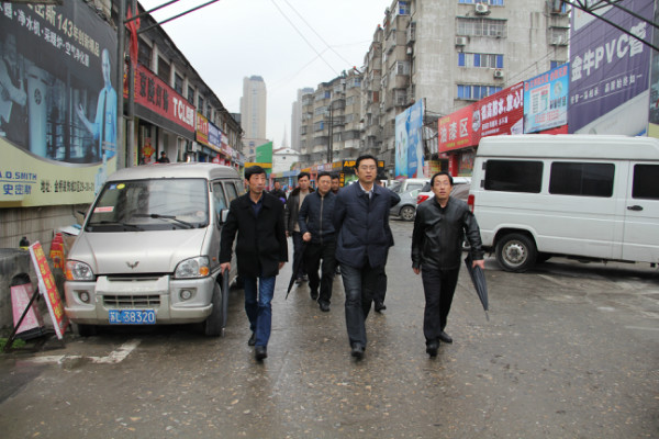 章朝陽現場考察了金橋裝飾材料市場、墻紙布藝大樓,通過實地考察,詳細了解市場內商鋪出租情況和商戶經營情況。