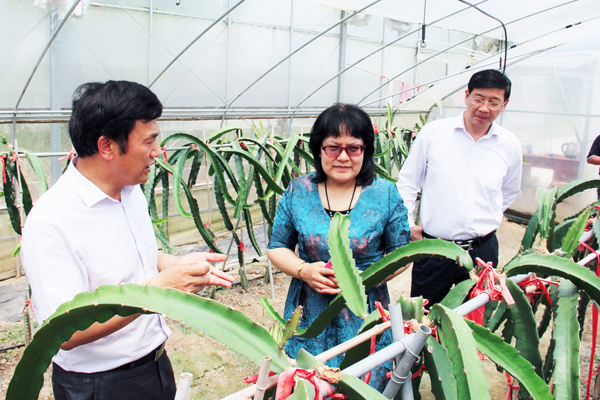 劉克英一行首先來到有機(jī)農(nóng)莊,詳細(xì)了解了農(nóng)產(chǎn)品質(zhì)量管理體系建設(shè)情況,現(xiàn)場(chǎng)察看了有機(jī)農(nóng)業(yè)生產(chǎn)情況及紅心火龍果采摘園的長勢(shì),對(duì)有機(jī)櫻桃番茄、早春紅玉西瓜的口感贊不絕口,認(rèn)為有機(jī)農(nóng)莊在“兩西”高效農(nóng)業(yè)上充分發(fā)揮出示范引領(lǐng)作用。在農(nóng)場(chǎng)退伍軍人江海強(qiáng)牽頭成立的富源養(yǎng)殖合作社內(nèi),林下養(yǎng)殖的生態(tài)乳鴿、受市場(chǎng)歡迎的寵物狗養(yǎng)殖吸引了劉克英的目光,她與養(yǎng)殖戶親切交談,細(xì)致地了解乳鴿的飼料構(gòu)成、市場(chǎng)銷售以及鴿糞處理等方面的情況,對(duì)小江開動(dòng)腦筋鉆研市場(chǎng)取得的成就表示贊賞。農(nóng)場(chǎng)西紅花種植戶臧新軍向劉克英介紹了?港農(nóng)場(chǎng)職工居民發(fā)展西紅花種植的情況,西紅花合作社自成立以來已先后帶動(dòng)66戶職工及周邊鄉(xiāng)鎮(zhèn)農(nóng)戶種植,畝均純效益達(dá)到3萬元以上,創(chuàng)江蘇墾區(qū)高效農(nóng)業(yè)畝效益之最。