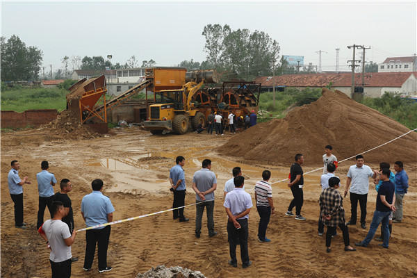 為嚴(yán)厲打擊非法洗砂礦行為,切實保護(hù)自然生態(tài)環(huán)境,9月6日上午,在海州區(qū)公安分局、環(huán)保局、國土局、水利局、市場監(jiān)督管理局等部門的大力支持下,崗埠農(nóng)場有限公司安委會、社區(qū)、派出所和相關(guān)生產(chǎn)區(qū)、部門聯(lián)合開展打擊非法洗砂清理取締專項行動。農(nóng)場公司總經(jīng)理助理王國亮親自帶隊,現(xiàn)場督導(dǎo)整治行動。
