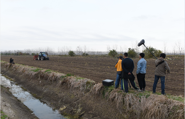 中央電視臺七套編導拍攝人員一行先后來到淮海農場四五分場社區小麥播種的田間地頭進行拍攝,攝制組人員通過大場景、近景和特寫的鏡頭,實時拍攝大型農機作業的整體景觀和中國北斗導航系統全天候智能化播種的鏡頭,同時還就改革開放四十年來就現代農業的發展變化等話題采訪了農場有限公司的相關管理從業人員。屆時,電視新聞將在中央電視臺第七頻道《大國農業》系列紀錄片中進行報道。圖為中央電視臺七套農業欄目組一行在淮海拍攝現代農業時的場景。