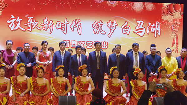 大會(huì)緊接著還舉行了“放歌新時(shí)代、筑夢(mèng)白馬湖”新春文藝演出。姚春華在演出前作了熱情洋溢的致辭。來自江蘇青春歌舞團(tuán)的演員及白馬湖駿逸舞蹈隊(duì)的隊(duì)員們?yōu)榕c會(huì)代表及部分職工居民們帶來了《盛世龍騰耀中華》《春天的故事》《春雨沐浴白馬湖》等十多個(gè)精彩的文藝節(jié)目,整場(chǎng)演出最后在舞蹈《不忘初心 砥礪前行》中落下了帷幕。