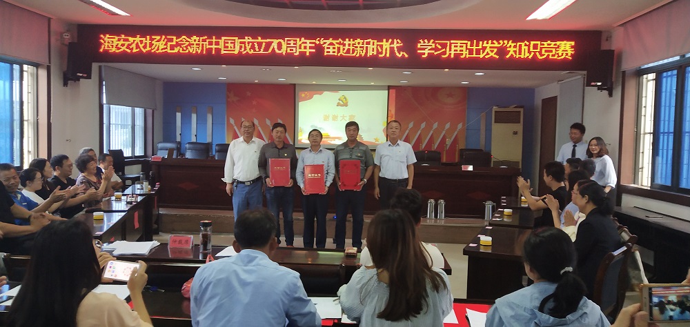 秋風送爽、丹桂飄香。9月25日下午,海安農場黨委舉辦紀念新中國成立70周年“奮進新時代、學習再出發”學習強國知識競賽,喜迎祖國70歲華誕,為祖國喝彩。來自農場6個基層支部代表隊的18名選手參加了競賽。