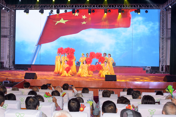 電力公司的腰鼓表演《歡樂喜慶》拉開了展演的帷幕,歡快的鼓點、躍動的舞姿展現出改革開放40年來農場職工群眾滿滿的幸福感和獲得感;來自一生產區的小合唱《祝福祖國》喉清韻雅,以歌聲代語言,抒情銘志,唱出了對祖國的美好祝愿;漁場公司表演的《紅色傳承》,帶觀眾走進那段激情燃燒的歲月;綠農園公司帶來的《幸福舞起來》將舞蹈與現實影像有機融合,呈現給觀眾美麗臨海花園農場綠色畫卷下的優美舞姿,讓觀眾眼前一亮........精彩紛呈的節目展現了廣場舞多樣的美,精彩的表演贏得現場觀眾陣陣掌聲。