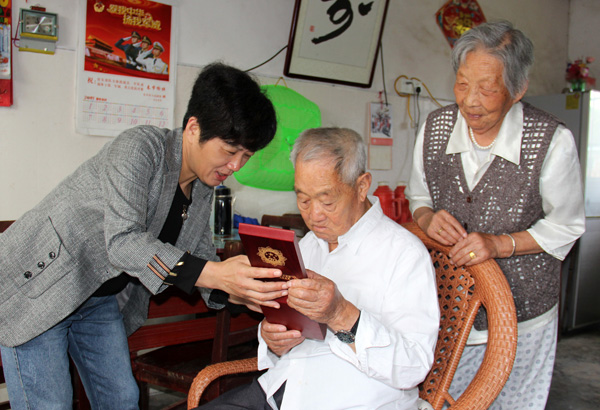 在慶祝中華人民共和國成立70周年之際,?港農場14名中華人民共和國成立前參加革命工作的、健在的老戰士老同志榮獲了由中共中央、國務院、中共軍委聯合頒發的“慶祝中華人民共和國成立70周年”紀念章。近日,公司黨委書記王世伯、黨委工作部負責人及社區有關人員專程為老同志們送上紀念章。