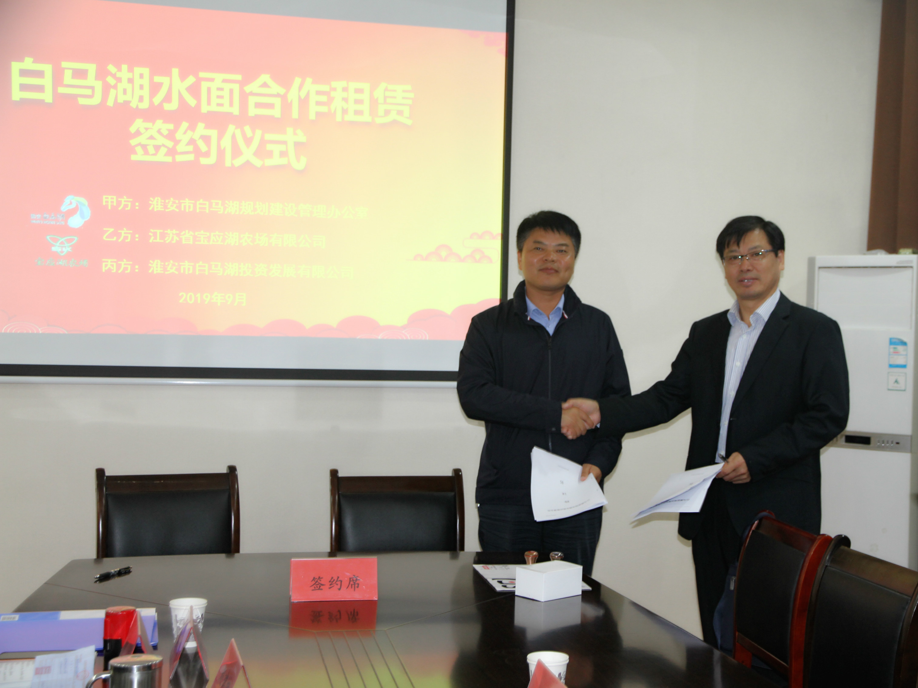 10月10日,寶應(yīng)湖農(nóng)場有限公司小會室內(nèi)掌聲陣陣,標志著農(nóng)場公司與淮安市白馬湖規(guī)劃建設(shè)辦公室、淮安市白馬湖投資發(fā)展有限公司開啟白馬湖退圍還湖安置區(qū)租賃合作新征程。
