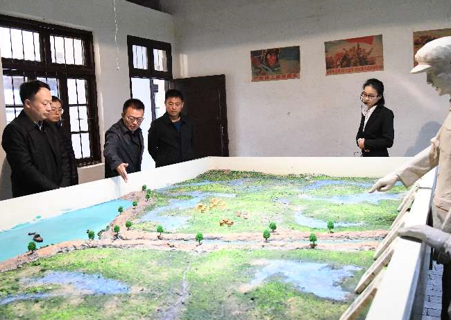 劉耀武首先來到農(nóng)建四師紀(jì)念碑、毛澤東主席發(fā)布的命令碑文、農(nóng)建四師暨淮海農(nóng)場(chǎng)歷史陳列館進(jìn)行參觀。參觀調(diào)研過程中,農(nóng)場(chǎng)公司領(lǐng)導(dǎo)和陳列館講解員分別向劉耀武介紹了農(nóng)建四師萬名指戰(zhàn)員來到黃海灘涂屯墾戍邊、開荒建場(chǎng)方面的史實(shí)情況,并就陳列館中的資料照片、捐獻(xiàn)實(shí)物進(jìn)行了詳細(xì)說明。館內(nèi)珍藏的每一件老舊的物件、每一幅珍貴的圖片、每一尊形象化的雕塑和情況介紹短片都給劉耀武等一行留下了深刻的印象,劉耀武看得仔細(xì),聽的認(rèn)真,他不僅對(duì)陳列館中珍藏的物品感到了濃厚的興趣,更為農(nóng)建四師廣大將士身上由內(nèi)而外煥發(fā)出來的軍墾傳統(tǒng)精神所折服。