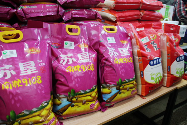 直營店內(nèi),人頭攢動、熱鬧非凡。蘇墾米業(yè)公司的南粳9108、南粳香米、富硒大米等作為店內(nèi)主打產(chǎn)品在核心區(qū)域進(jìn)行了展示,金太陽糧油股份有限公司的原香稻米油、葵王濃香花生油,以及江蘇新洋商業(yè)物資有限公司的糧博士生態(tài)大米、新洋農(nóng)場五谷雜糧等名牌產(chǎn)品吸引了眾多消費(fèi)者。