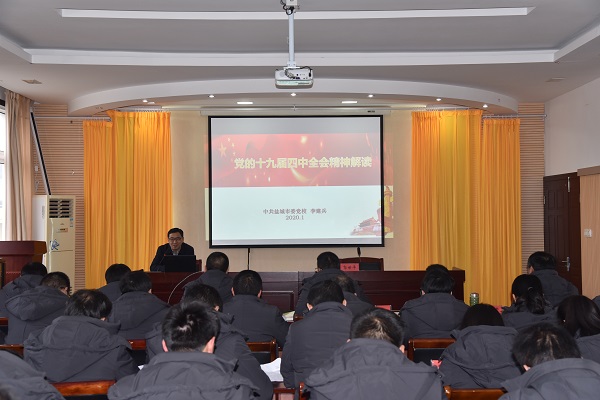 鹽城市委黨校李建兵教授在會(huì)上作了《黨的十九屆四中全會(huì)精神解讀》的專題輔導(dǎo)講座,從全會(huì)概況與重大意義,社會(huì)主義制度的顯著優(yōu)勢與制度自信,制度建設(shè)的總體要求、總體目標(biāo)與重點(diǎn)任務(wù),貫徹落實(shí)好全會(huì)精神等四個(gè)方面對全會(huì)精神作了深刻闡述,為公司貫徹落實(shí)好黨的十九屆四中全會(huì)精神,提供了重要的理論方向。