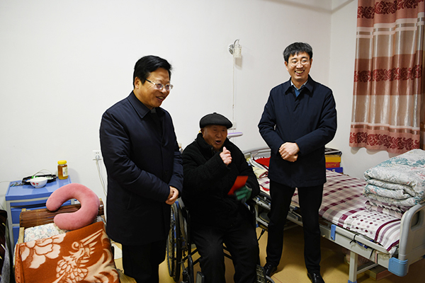 黃禮慶、朱明亮、王學健、徐坤山、袁建斌、馮衛東等領導首先一同前往離休老同志劉連昌家中,黨委書記黃禮慶向劉老致以新春問候,并祝愿老人家健康長壽、 闔家幸福福!劉連昌老人感謝黨委領導多年來對他和家人的關懷,他稱贊農場近年來有很大的發展變化,建議農場河濱公園長廊增加長壽文化知識。黃禮慶表示,將進一步加強農場文化陣地建設,利用現有場所逐步增加紅色教育和有益職工群眾身心健康的內容。