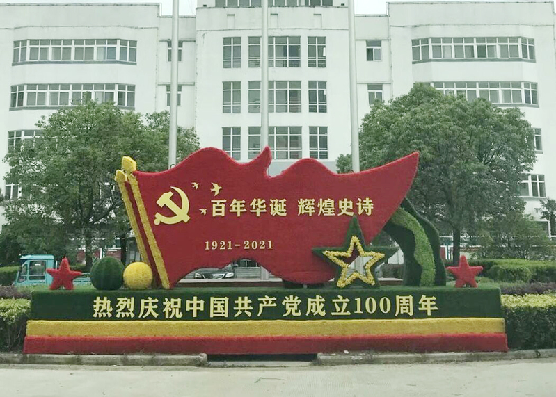 早在5月份,一組熱烈慶祝中國(guó)共產(chǎn)黨成立100周年的綠雕就將辦公樓前的花壇裝點(diǎn)一新。根據(jù)慶祝建黨100周年氛圍營(yíng)造方案,近期,施工人員抓緊對(duì)350省道小城鎮(zhèn)段、裕源大道、建場(chǎng)路的燈桿上安裝印有“中國(guó)夢(mèng)”字樣的中國(guó)結(jié)景觀燈,同時(shí)穿插“不忘初心,牢記使命”、“砥礪奮進(jìn),追夢(mèng)前行”、“聽黨話,跟黨走”以及企業(yè)精神的道旗和宣傳標(biāo)語等,營(yíng)造出一派紅色、熱烈、喜慶、向上的濃厚氛圍。
