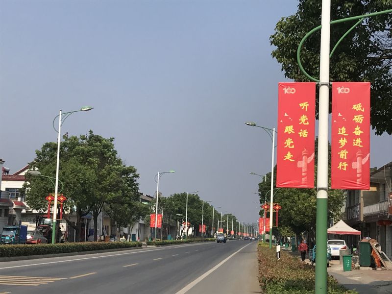 尤其是中國(guó)結(jié)景觀燈,主體材質(zhì)為紅色吸塑,LED發(fā)光,單個(gè)高2.5米,寬1.3米,兩個(gè)一組,分別安裝在路燈桿兩側(cè)高4米的位置,照明和美觀效果兼?zhèn)洌_實(shí)讓人眼前一亮。而且中國(guó)結(jié)寓意深刻,暗含了中國(guó)傳統(tǒng)厚重的吉祥文化,表達(dá)著熱烈濃郁的美好祝福,融入了中華民族對(duì)生命的認(rèn)知,對(duì)生活的體驗(yàn),對(duì)未來的期許。目前已安裝好的“中國(guó)結(jié)”和道旗及宣傳標(biāo)語共近500組。這部分主干道上的燈桿換上“新裝”以后,白天,宣傳標(biāo)語整齊喜慶、入腦入心,夜晚,中國(guó)結(jié)景觀燈和路燈交相輝映,營(yíng)造了濃郁的喜慶氛圍,吸引了不少居民駐足拍照留念,得到了大家的一致好評(píng)。