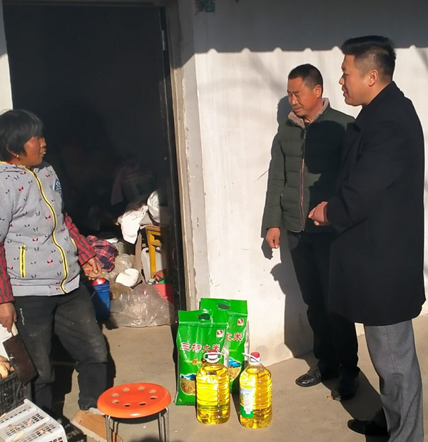 結(jié)對扶貧小組到趙素梅家后,送上了米、油、慰問金等,并詳細詢問她的身體狀況、日常收入和近期生活情況,了解目求需求以及存在的困難和問題,并鼓勵她樹立信心,叮囑她有困難及時反映,幫扶小組會竭盡所能為她提供生活中的急需用品并解決生活中及需解決的實際困難。