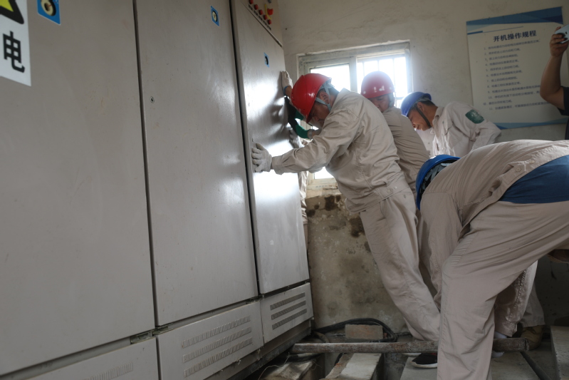 75日上午610分。“楊隊啊,8隊南電站不工作了!”接報后,凱惠電力寶應湖分公司負責人楊加春立即組織3名電工趕到現場。經排查,是電站開關柜壞了。落實開關柜、組織材料,他們兵分兩路共同推進。十余個電話打過后,趙愛華終于在農機庫找到一臺型號匹配的開關柜。8點趙愛華等將登高工具、絕緣棒、電纜等材料運到電站。電工邵榮祥戴上安全帽,絕緣棒將三相開關斷開,率先爬上高壓電桿,又和電工趙愛華、劉福相一起將壞電柜上的控制開關線一一拆除。不足9平方的泵房里,悶熱狹小,壓得人透不氣來,地處田間雜草叢中,蚊蟲直撞人臉,他們全然不顧,全神投入搶修,不一會兒就大汗淋漓。拆除后,他們又與8隊工人一起把新柜抬進泵房。200多斤開關柜死沉死沉,狹小的空間嚴重限制作業,一不小心趙愛華的手肘撞在了電柜上,一陣鉆心得痛。終于把柜子擺到合適位置,接線、拉電纜,電工們立即展開。11點,邵榮祥再次爬上高壓電桿,推上開關,啟動控制,電站發出隆隆的歡唱。此時,溫度計顯示的室外溫度達到了43攝氏度,電工們已全身濕透。
