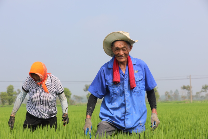 連日的高溫下,100余名工人每天凌晨3點多就下田拔草,到上午10點結束。通過人工拔草,減輕雜草雜稻對水稻的生長影響,在確保有機稻產量的同時,更是保證有機稻品質。