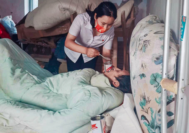 云臺農(nóng)場張圩居委會所轄小糧地居民點,地理位置偏僻,是個只有5 戶人家的待撤并村莊。2022年8月9日,在“四個百”活動日常走訪中,當(dāng)居委會走訪到小糧地居民點曹子牛家時,發(fā)現(xiàn)昏暗的房間內(nèi)陣陣異味撲鼻而來。獨居在此的居民曹子牛,因起夜從床上不慎跌落在地,造成意識模糊講不出話來,大小便失禁,生活無法自理,成了一名“失能人”。作為居委會的幫扶對象,曹子牛一直是村子里讓人頭疼的“老大難”。年輕時候的曹子牛常年游手好閑、酗酒成性,喝多了就家暴妻子孩子,2010年、2018年,他先后兩次因為酒駕摔傷,導(dǎo)致左腿粉碎性骨折、腰部受傷,妻子頭部嚴(yán)重受傷。厄運接踵而至,讓妻兒無法忍耐,先后離開了家。由于他平日的言行,加之親屬能力有限無人愿意照料他,這給張圩居委會黨支部書記徐洪敏出了一道大難題,這燙手的山芋到手了就沒有丟掉的道理,徐書記沒有絲毫的猶豫,她立即成立了以她和居委會黨支部委員段萬江同志、小糧地轄區(qū)網(wǎng)格單元長顧林國同志為成員的專項幫扶小組,第一時間為曹子牛送去了米、面、水、雞蛋、八寶粥、隔尿墊、尿不濕等食物和生活必需品,并看守照料曹子牛。照料這樣的失能人難度可想而知,而這位90后女書記愿意帶著大家干這種又臟又累伺候人的活,更是難以想象!面對滿屋的異味,她連眉也沒皺一下,不嫌臟、不怕累,帶領(lǐng)幫扶小組上前給曹子牛喂水、喂藥、喂飯,處理他的大小便,換洗床鋪,打掃房間,真正將群眾視為自己的親人去照料,去愛護(hù)。照料曹子牛生活的同時,她也沒有停止為曹子牛爭取援助的腳步。她積極聯(lián)合轄區(qū)派出所和有關(guān)部門,想方設(shè)法聯(lián)系他的親屬,苦口婆心的勸說,幫助協(xié)調(diào)矛盾糾紛,積極申請民政救助,聯(lián)系海州區(qū)殘聯(lián)上門幫助他評殘,為曹子牛申請重殘補助,讓曹子牛真真切切地感受到黨的關(guān)懷。