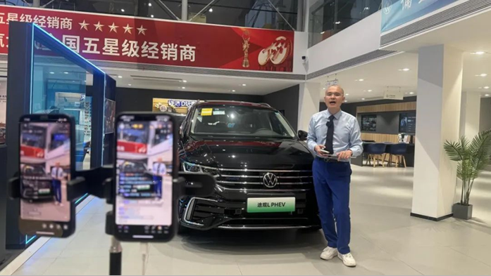 “不是任何人都適合面對鏡頭,所有銷售顧問必須輪播上崗,通過全員直播選拔優(yōu)秀主播人員和銷售支持。”市場專題會議上,蘇舜對直播營銷的人員架構(gòu)和主播的選拔提出了明確要求。蘇舜年輕人居多,他們不僅充滿活力,而且對新鮮事物感興趣,公司從中挑選出形象好、口才出眾、專業(yè)能力強(qiáng)等方面均較為優(yōu)異的員工,經(jīng)過培訓(xùn)后組成主播團(tuán),輪流在網(wǎng)絡(luò)上展示自我,試播通過后再擇優(yōu)確定最終人選,讓員工既下得了車間,還上得了直播間。目前,公司11家4S店直播營銷團(tuán)隊(duì)均為“1+1+3”的架構(gòu)(即:1名專職主播、1名兼職主播和邀約專員、銷售顧問、服務(wù)顧問3名銷售支持人員),形成類似DCC的直播小組協(xié)同作戰(zhàn),主播人員中既有企業(yè)一線員工,也有基層管理崗位人員。