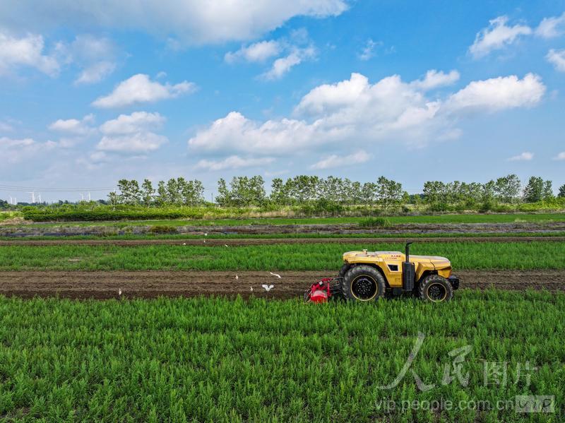 2025年5月16日,位于江蘇省淮安市金湖縣的江蘇農(nóng)墾寶應(yīng)湖農(nóng)場歐盟國標雙認證的有機稻種植基地,一臺240馬力無人智能拖拉機正在進行旋耕作業(yè)。