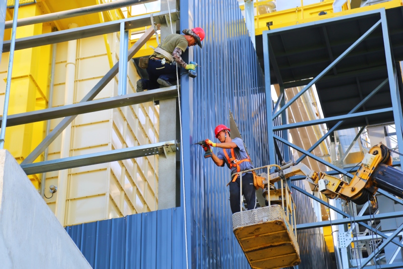 8月12日,在崗埠農場,建筑工人們配合大型吊車,加緊進行糧食烘干倉封頂作業。連日來,施工單位搶抓早晚有利時機,抓緊推進5G+智慧糧倉建設,爭取項目早日建成投產,助力糧食安全。