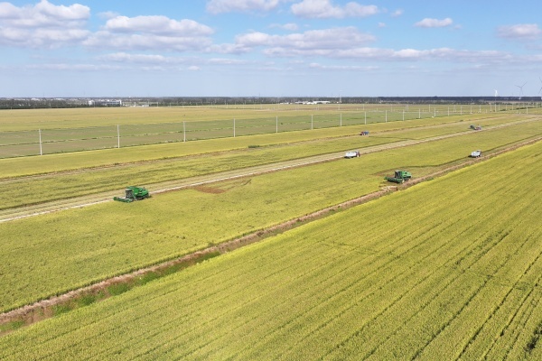 “地里看不到人,但是一切都在掌握。”蘇墾農(nóng)發(fā)臨海分公司副總經(jīng)理馮衛(wèi)東沿著田間小路巡視稻田,說起今年的種植、收獲情況了如指掌。他的種田秘籍就是稻田里的攝像頭、空中的無人機。