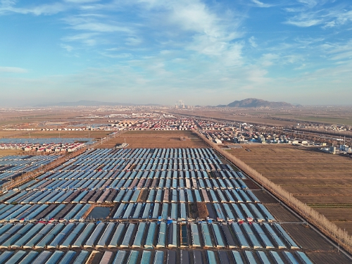 近年來,江蘇省連云港市大力發展高效設施農業,通過“黨建+市場+農戶”的模式,助力群眾增收致富。圖為海州區的江蘇農墾崗埠農場,近千座溫室大棚整齊坐落在田野間。