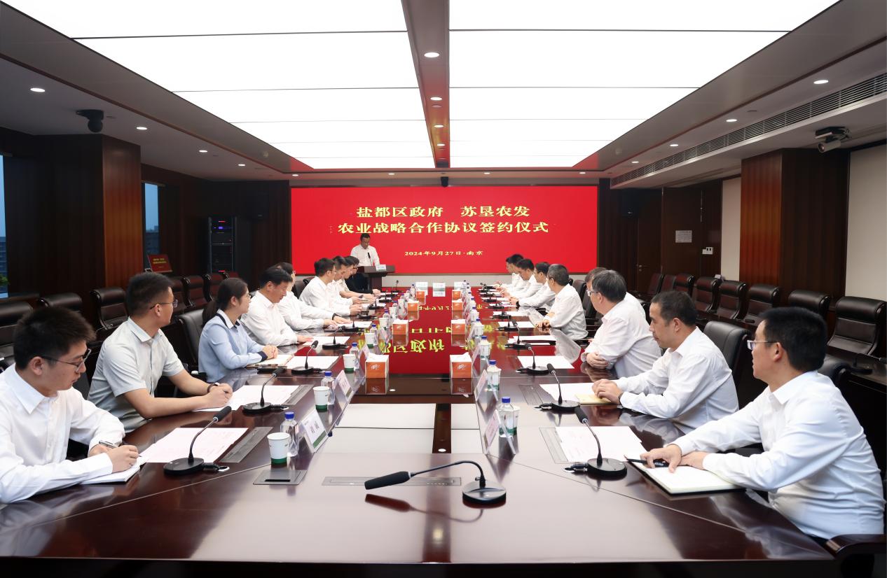 9月27日下午,蘇墾農發與鹽都區政府簽訂農業戰略合作協議。集團黨委書記、董事長吳本輝出席簽約儀式,集團公司總經濟師、蘇墾農發黨委書記、董事長朱亞東主持,集團黨委委員、蘇墾農發總裁丁濤,鹽都區委副書記、代區長臧沖出席并致辭。丁濤在致辭中表示,江蘇農墾與鹽城歷史淵源深厚、產業高度契合、資源優勢互補,雙方有著良好的合作基礎。此次雙方簽署戰略合作協議,是貫徹落實鹽城市與江蘇農墾戰略合作的具體行動,雙方將秉承真誠合作、互利共贏的理念,充分發揮各自優勢,圍繞社會化全農服務、優質農產品供應、秸稈綜合利用等方面開展全方位合作。期待雙方以發展現代農業為核心,加強政策協同、推進資源整合、深化產業合作,共同打造墾地合作的“鹽城樣板”,為推動高質量發展和農業現代化走在前作出新的更大貢獻。臧沖向江蘇農墾長期以來對鹽都經濟社會發展的關心支持表示感謝,簡要介紹了鹽都區“三農”工作情況。他指出,近年來,鹽都區聚焦農業高質高效、鄉村宜居宜業、農民富裕富足,大力推進國家鄉村振興示范縣建設。蘇墾農發是全省規模最大、現代化水平最高的農業類公司和商品糧生產基地,希望雙方以本次協議簽訂為開端,推動雙方在產業項目、平臺建設、人才交