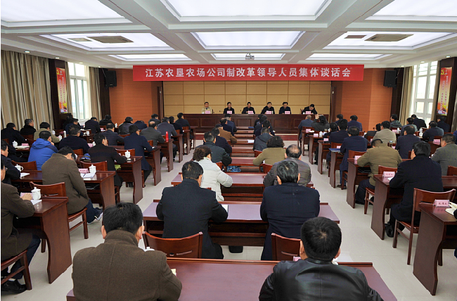3月20日下午,江蘇農墾農場公司制改革領導人員集體談話會在淮海農場舉行。集團公司總經理胡兆輝出席會議。集團公司黨委委員、總經理助理楊義林主持會議。  會上,胡兆輝闡述了公司制改革的重要性、必要性和