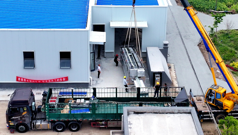 “起鉤!”隨著產業辦加工基地負責人一聲令下,吊車吊帶瞬間繃直,平板車上鮮食玉米加工設備氣吹式剝皮機、切頭去尾機緩緩脫離,產業辦管理人員戴好安全帽,協助吊車卸車,吊臂以毫米級精度微調角度,加工設備在空中劃出一道完美弧線。這是黃海農場鮮食玉米智能加工設備進場安裝的一個場景。