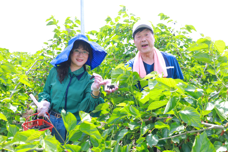 近日,云臺農場云水灣濕地公園內,桑葚飄香,桑樹上掛滿了紫紅飽滿的桑葚,葉綠果艷,令人垂涎欲滴。眾多游客紛至沓來,采摘桑葚,盡享親近自然、體驗農趣的愜意時光,感受著采摘的樂趣。