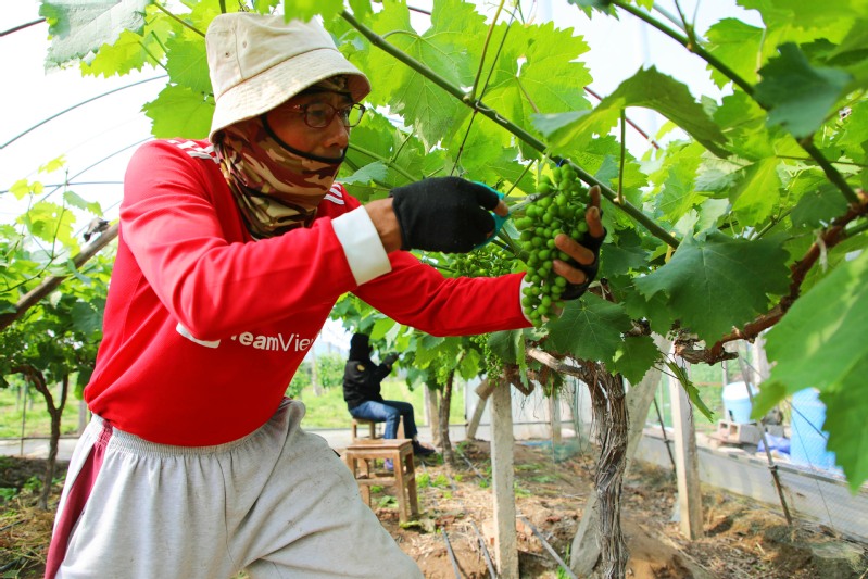 連日來,江心沙農場果農在葡萄園忙著疏果作業,根據坐果率高低剪掉病蟲果、裂果、日灼果、畸形果等,選留大小一致、向外排列整齊的果子,做到密度適中、串型合理,確保采摘時高產與優質并舉。