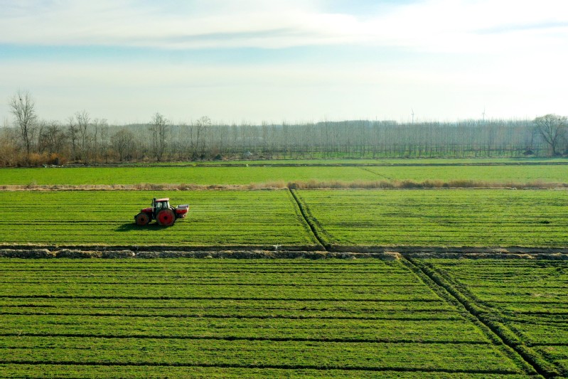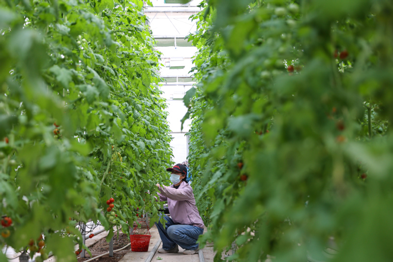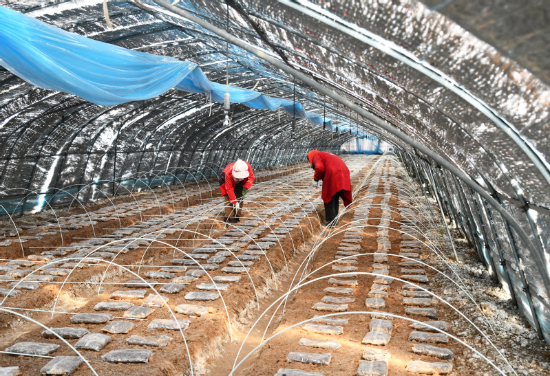 隨著氣溫逐漸升高,為保障羊肚菌正常生長發(fā)育,2月10日上午,淮海產(chǎn)業(yè)發(fā)展中心大棚基地工作人員,積極抓住羊肚菌原基萌發(fā)這一關(guān)鍵節(jié)點(diǎn),有條不紊地進(jìn)行揭膜、搭小棚等催菇前的準(zhǔn)備工作。“今天是我們第一批羊肚菌播種后的第73天,目前有11個種植大棚內(nèi)的羊肚菌菌霜已經(jīng)完全消退,且出現(xiàn)了大量的原基,說明這批羊肚菌的菌絲已經(jīng)達(dá)到成熟,進(jìn)入下一個發(fā)育階段。”羊肚菌種植技術(shù)員袁亞洲介紹說,“羊肚菌原基的形成是羊肚菌生長過程中的一個重要環(huán)節(jié),因此我們要及時揭開覆蓋在畦面上的地膜,保證原基獲取適宜的生長環(huán)境,確保原基能夠茁壯生長。?”羊肚菌大棚內(nèi),90多米長的畦面上,斷斷續(xù)續(xù)鋪滿了米粒大小的白色菌菇。技術(shù)員李博正拿著手機(jī),在揭開地膜后的大棚內(nèi)來回穿梭,不時蹲下身子仔細(xì)查看羊肚菌原基的長勢,以及對營養(yǎng)袋中營養(yǎng)物質(zhì)的吸收情況。“羊肚菌菌絲扭結(jié)成球,形成晶瑩透明的米粒狀結(jié)構(gòu),就是羊肚菌的原基。因?yàn)槭治⑿。晕叶寄檬謾C(jī)相機(jī)放大來看。”李博介紹說,“我們有好幾個種植大棚都出現(xiàn)了一兩個羊肚菌幼菇,也就是所謂的‘信號菇’,說明羊肚菌發(fā)育狀況良好,看來今年我們羊肚菌的產(chǎn)量前景不錯哩。?”為了達(dá)到增溫保濕的效果,基地的工作