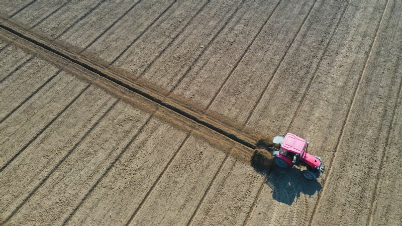 天朗氣清、陽光普照,在前茬作物騰出的土地上,農機在翻耕土地,開溝機深挖排水溝,合奏一支“三秋”進行曲。