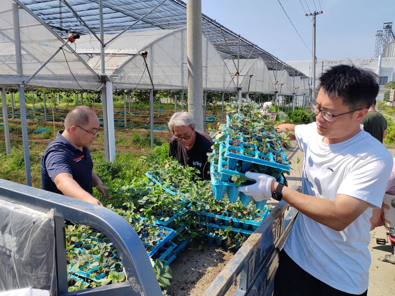 連日來,持續(xù)的高溫天氣“烤”驗著三河農(nóng)場繁育在獼猴桃架下的穴盤草莓,機關(guān)、社區(qū)全體工作人員頂高溫、戰(zhàn)酷暑,全力以赴投入到穴盤草莓苗的搬運和擺放工作中。